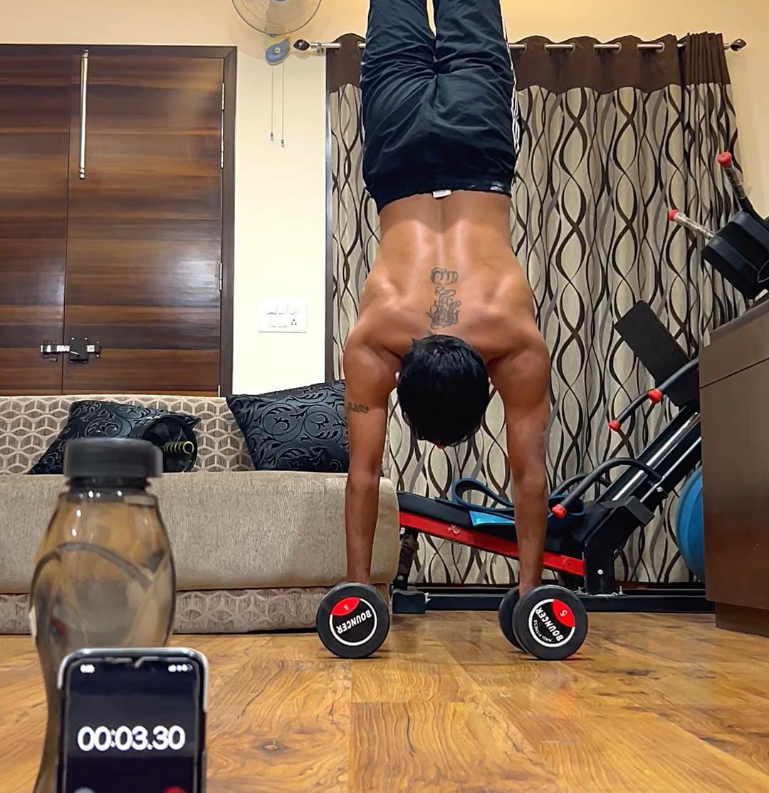 दयाल बाग स्थित इंदिरा कॉलोनी में रहने वाले कैलिस्थेनिक्स एथलीट प्रदीप कुमार ने डंबल के ऊपर 2 मिनट 10 सेकंड तक हाथ के बल खड़े होकर(हैंड स्टैंड) इंटरनेशनल बुक ऑफ रिकॉर्ड्स में अपना नाम शामिल किया है. इस प्रक्रिया को ‘लांगेस्ट टाइम टू बैलेंस हैंड स्टैंड पोजीशन ऑन डंबल्स’ भी कहते हैं.