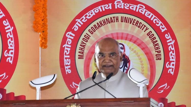 President Ram Nath Kovind in UP: राष्ट्रपति रामनाथ कोविंद ने शनिवार को उत्तर प्रदेश के पहले आयुष विश्वविद्यालय का शिलान्यास और महायोगी गोरखनाथ विश्वविद्यालय का लोकार्पण किया. इस दौरान उनके साथ मुख्यमंत्री योगी आदित्यनाथ और राज्यपाल आनंदीबेन पटेल भी मौजूद रहे. गोरखनाथ विश्वविद्यालय के लोकार्पण समारोह में राष्ट्रपति ने कहा कि स्वामी विवेकानंद कहते थे कि उन्हें ऐसी शिक्षा चाहिए, जिससे चरित्र बने, मानसिक बल बढ़े, बुद्धि का विकास हो और जिससे मनुष्य अपने पैरों पर खड़ा हो सके. महाराणा प्रताप शिक्षा परिषद् द्वारा संचालित संस्थाओं में विद्यार्थियों को अत्याधुनिक ज्ञान-विज्ञान की शिक्षा देने के साथ-साथ उनके समग्र व्यक्तित्व के विकास पर बल दिया जाता है.