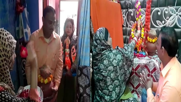 Aligarh News: अलीगढ़ के शाहजमाल स्थित माबूद नगर की रहने वाली रूबी आसिफ खान, फिर से चर्चा में हैं. इस बार उन्होंने शारदीय नवरात्रि पर अपने घर में मां दुर्गा की प्रतिमा को स्थापित किया है और पूरे नौ दिन तक नवरात्रि के व्रत को रखे हुए हैं. रूबी आसिफ खान ने पहले गणेश प्रतिमा को घर में स्थापित किया था और गंगा में विसर्जित भी किया था.