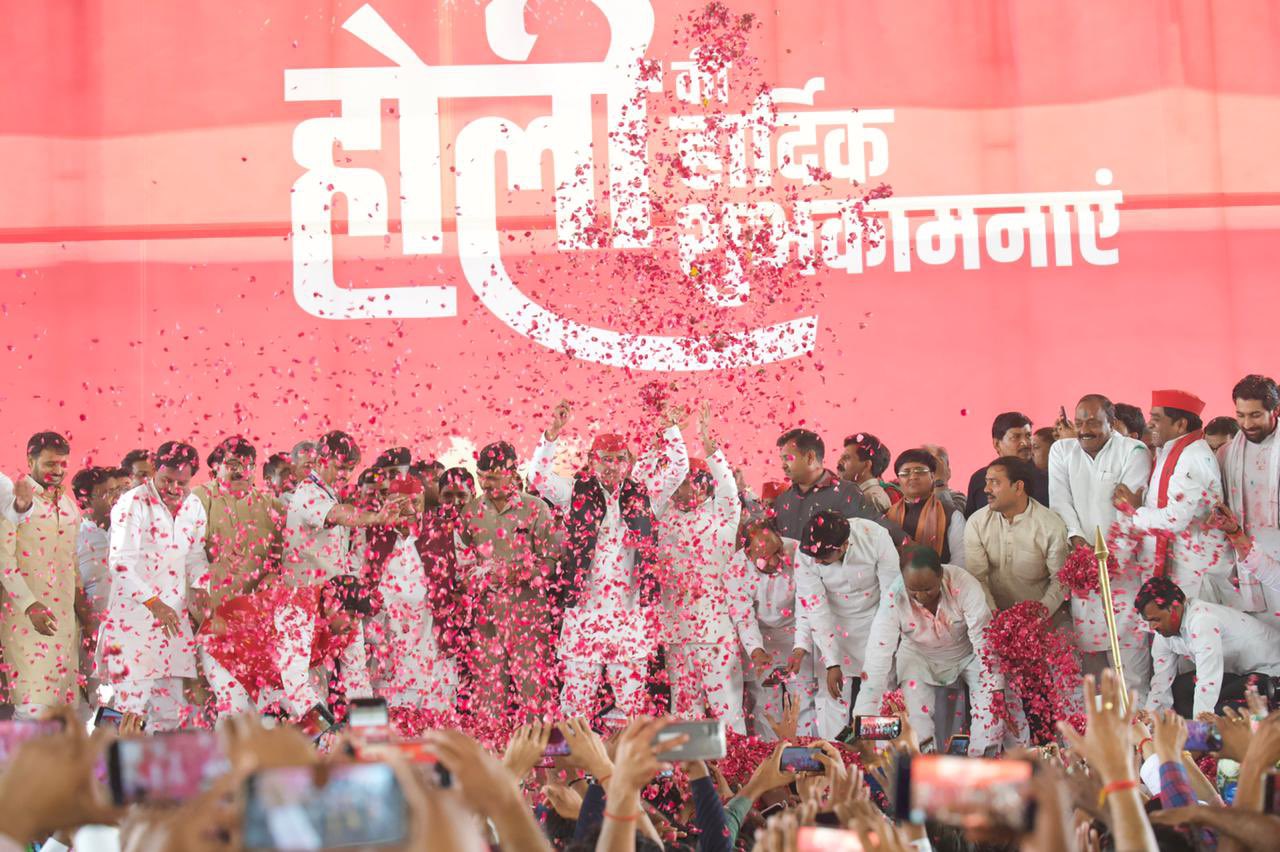 इस बीच सपा सुप्रीमो अखिलेश यादव, रामगोपाल और शिवपाल यादव मंच प एक साथ बैठे हुए थे. होली के मौके पर अखिलेश यादव ने हाथ जोड़कर सभी का अभिवादन किया. साथ ही, मंच पर फूलों की होली भी खेलते दिखे.