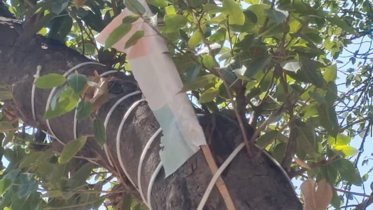 ठंडी सड़क के पेड़ पर एक तिरंगा लहराता मिला