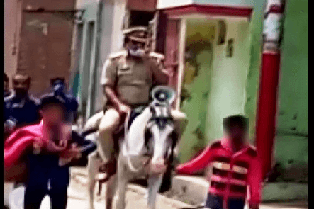 वीडियो में घोड़े की लगाम दो बच्चे खींच रहे है. नाबालिग बच्चों के साथ दारोगा जी घोड़े पर सवार होकर अपने क्षेत्र में ऐलान करते रहे. पूरे क्षेत्र में वो ऐसे ही घूमते रहे और सोशल मीडिया पर चर्चा का विषय बने रहे. लोग इस वायरल वीडियो को खूब मजे लेकर देख रहे हैं. वायरल वीडियो को देखकर कई लोग कह रहे हैं कि बिना मास्क लगाए लगाम नाबालिग बच्चे से खिंचवाई जा रही है और पुलिस अधिकारी घोड़े पर बैठकर माइक से लॉकडाउन से जुड़ी कुछ घोषणाएं कर रहे है.