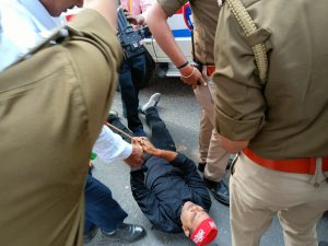 कार्यक्रम स्थल के बाहर मुख्यमंत्री योगी आदित्यनाथ के खिलाफ सपाइयों का विरोध-प्रदर्शन चल रहा था. इस दौरान पुलिस को काफी मशक्कत का सामना करते हुए प्रदर्शनकारियों पर काबू करना पड़ा.