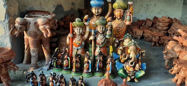 Gorakhpur News: गोरखपुर के औरंगाबाद गांव के टेराकोटा हस्तशिल्प का नाम आते ही उसकी एक से बढ़कर एक सुंदर कलाकृतियों की तरफ सबका ध्यान चला ही जाता है. इन्हें बनाने वाले कई कुम्हारों को इसी कला की वजह से सात समंदर पार जाने का मौका भी मिल चुका है. इनके हाथों का जादू अब हर किसी के सिर चढ़कर बोल रहा है. इनमें से कुछ कुम्हारों को नेशनल और स्टेट लेवल पर अवॉर्ड भी मिल चुके हैं. वन डिस्टिक वन प्रोडक्ट में टेराकोटा को शामिल करने के बाद आज टेराकोटा की मांग पहले की अपेक्षा ज्यादा बढ़ गई है. मार्केट में डिमांड इतनी है की ये लोग उसको पूरा ही नहीं कर पर रहे हैं.