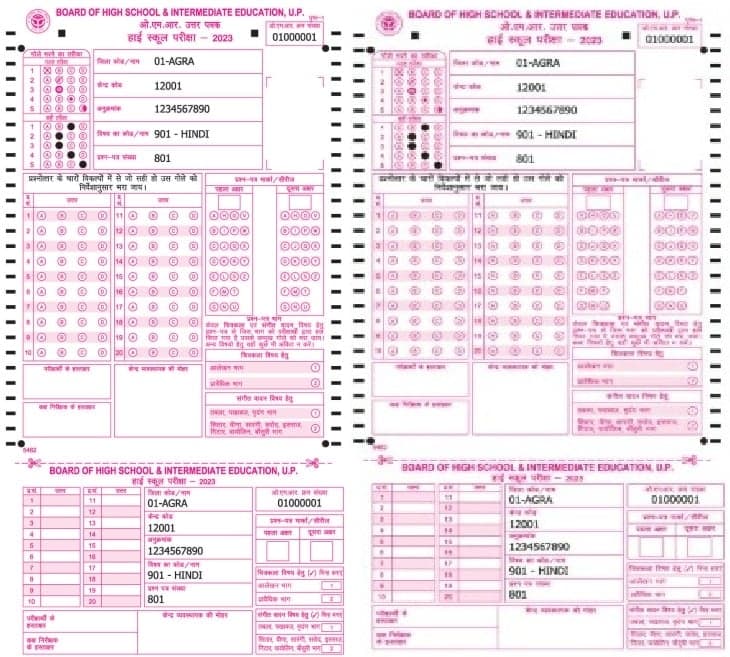 ओएमआर शीट का सैंपल अपलोडहाईस्कूल के छात्र-छात्राओं को किसी भी प्रकार की कन्फ्यूजन न हो इसके लिए यूपी बोर्ड के सचिव दिब्यकांत शुक्ल ने मंगलवार को बोर्ड की वेबसाइट पर ओएमआर शीट का सैंपल और उसे भरने के लिए एडवाइजरी जारी की है, ताकि ओएमआर के गोले भरते समय किसी प्रकार की गलती न हो जाए.