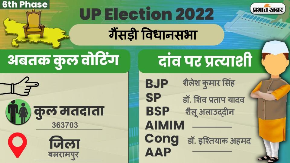 UP Chunav 2022: उत्तर प्रदेश विधानसभा चुनाव 2022 के चुनावी दंगल जारी है. यहां पांच चरणों में चुनाव हो चुके है. जिसके बाद आज छठे चरण का मतदान हुआ. बलरामपुर जिले में आने वाले गैंसड़ी विधानसभा सीट पर भी पांचवें चरण में मतदान हुआ. बलरामपुर जिले में शाम 5 बजे तक 48.53 प्रतिशत मतदान हुआ.