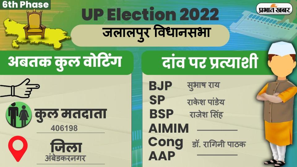 जलालपुर विधानसभा सीट उत्तर प्रदेश के अंबेडकरनगर जिले में आती है. इस सीट पर 2019 में हुए विधानसभा उप चुनाव में समाजवादी पार्टी के सुभाष राय ने बहुजन समाज पार्टी की प्रत्याशी डॉ. छाया वर्मा को 790 वोट से हराया था. हालांकि अब उन्होंने भारतीय जनता पार्टी का दामन थाम लिया है. यहां से बसपा के रितेश पांडे सांसद हैं.