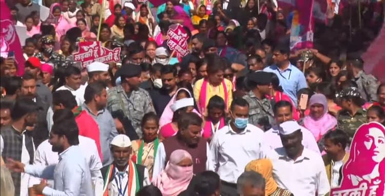 International Women’s Day 2022: कांग्रेस की राष्ट्रीय महासचिव प्रियंका गांधी लखनऊ की सड़कों पर मंगलवार 8 मार्च को पैदल मार्च कर रही हैं. उनके साथ इस बीच देशभर की कांग्रेस से जुड़ीं महिला नेता साथ चल रही हैं. गुलाबी रंग की साड़ी में हाथों में ‘लड़की हूं, लड़ सकती हूं’ की तख्ती लेकर पैचल मार्च का आयोजन किया जा रहा है. इस मार्च में बड़ी संख्या में महिला कार्यकर्ताएं भी शिरकत कर रही हैं. कांग्रेस के प्रदेश मुख्यालय में सुबह से इस कार्यक्रम का सिलसिला चल रहा था. कारण, यूपी के सियासी सफर में ‘महिला सशक्तिकरण’ की नाव में सवार प्रियंका गांधी के नेतृत्व में अंतरराष्ट्रीय महिला दिवस का आयोजन किया जा रहा है.