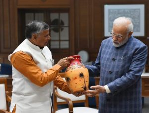 UP News: पीएम मोदी से मिले यूपी के कारागार मंत्री धर्मवीर प्रजापति, भेंट की कैदियों की बनाई हुई वस्तुएं
