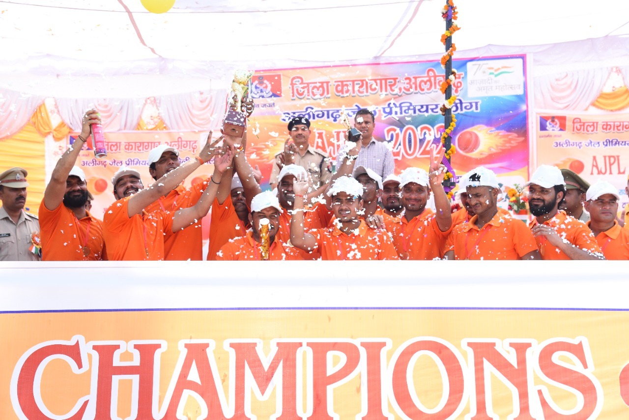 राइटर पैंथर्स बना चैंपियन… जिला कारागार में कैदियों के बीच चल रहे अलीगढ़ जेल प्रीमियर लीग के फाइनल में राइटर पैंथर्स और दादों दबंग के बीच मुकाबला हुआ. दादों दबंग ने टॉस जीतकर पहले फील्डिंग करने का निर्णय लिया. राइटर पैंथर्स ने पहले बल्लेबाजी करते हुए 15 ओवर में सभी विकेट खोकर 101 रन बनाए. जवाब में दादों दबंग ने लक्ष्य का पीछा किया, पर पूरी टीम 14.4 ओवर में 84 रन पर ढेर हो गई. राइटर पैंथर स्नेक दादा दबंग को 17 रन से हराकर विजेता ट्रॉफी पर कब्जा कर लिया. लीग में राइटर पैंथर्स के कप्तान राहुल चौहान को मैन ऑफ द मैच व दादों दबंग के संदीप को मैन ऑफ द सीरीज घोषित किया गया.