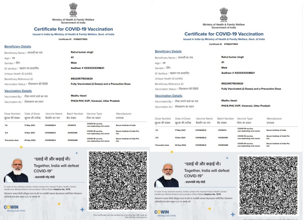 राहुल कुमार सिंह ने मीडिया से बात करते हुए बताया कि,वे उस समय हैरान रह गये जब घर बैठे-बैठे उनके पास कोविड वैक्सीन की प्रिकॉशन डोज लगने का मैसेज आ गया. उन्होने मात्र पहली दो डोज लगवायी हैं. उन्होंने न तो कोविड वैक्सीन की प्रिकॉशन डोज के लिए स्लाट बुक कराया न ही वो प्रिकॉशन डोज लगवाने कहीं गये. उन्होने बताया कि मैसेज देखने के बाद उन्होने जब सर्टिफिकेट डाउनलोड किया तो वो भी आसानी से हो गया तथा सर्टिफिकेट के अनुसार उन्हें काशी विद्यापीठ ब्लाक के प्राथमिक स्वास्थ्य केंद्र पर रविवार 4 सितंबर को श्रीमती मधु तिवारी द्वारा प्रिकाशन डोज लगा दी गयी.