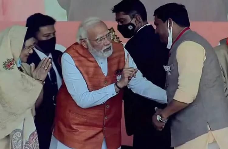 दरअसल, एक तरफ जहां तीसरे चरण के तहत यूपी में 11 जिलें की 59 सीटों पर मतदान चल रहा था, वहीं दूसरी ओर रविवार को पीएम नरेंद्र मोदी उन्नाव में चुनाव प्रचार कर रहे थे. इस बीच पीएम मोदी का चुनाव प्रचार तब चर्चा में आ गया, जब मंच पर पार्टी जिलाध्यक्ष अवधेश कटियार राम दरबार भेंट करने पहुंचे. कटियार ने रामदरबार भेंट करने के बाद पीएम मोदी के पैर छू लिए. इसके बाद पीएम मोदी उन्हें उंगली दिखाकर कुछ कहा शायद पैर छूने के लिए मना किया, और थोड़ी देर बाद खुद जिलाध्यक्ष अवधेश कटियार के पैर छू लिए. यह देखकर मंच पर बैठे सभी नेता हैरान रह गए.