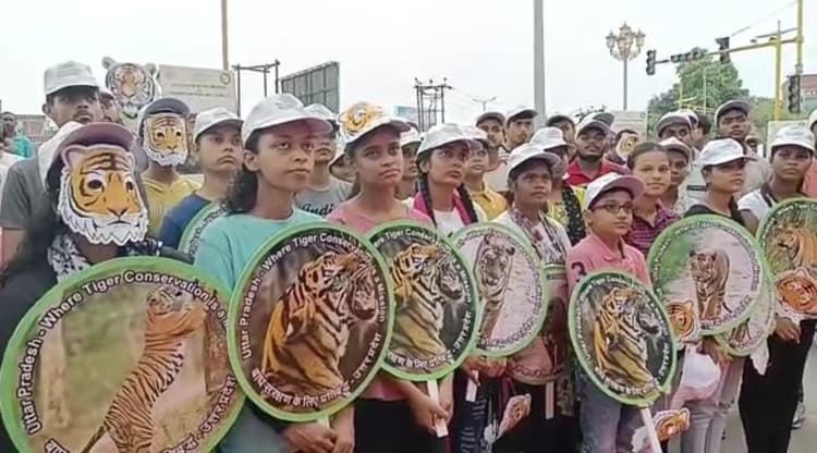 Gorakhpur News: विश्व बाघ दिवस (World Tiger Day) 29 जुलाई यानी शुक्रवार को है. गोरखपुर में बाघ दिवस के एक दिन पहले गुरुवार को गोरखपुर के लोगों ने पहली बार बाघ को बचाने का संकल्प लिया. रन फॉर टाइगर में दौड़ लगाया. गोरखपुर शहर के पैडलेगंज स्थित गौतमबुद्ध प्रवेश द्वार से प्राणी उद्यान के रेस्ट हाउस तक करीब 2 किलोमीटर तक लोगों ने लंबी दौड़ लगाई. राज्य के अपर प्रमुख वन संरक्षक टाइगर प्रोजेक्ट कमलेश कुमार ने हरी झंडी दिखाकर लोगों को दौड़ के लिए रवाना किया. इस दौरान शहर के लोगों में काफी उत्साह भी देखने को मिला.