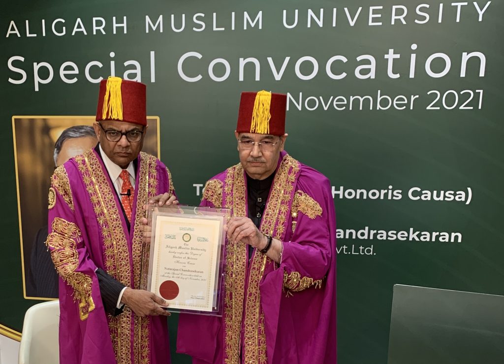 एएमयू में टाटा समूह की कंपनियों के प्रदर्शन में अनुकरणीय नेतृत्व के लिए नटराजन चंद्रशेखरन को डॉक्टरेट की उपाधि दी गई.