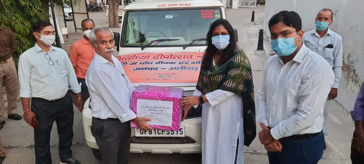 अयोध्या दीपोत्सव 2021 के लिए जनपद की 867 ग्राम पंचायतों से 5-5 दीपक प्रधानों ने संकलित किया और जिला पंचायत राज अधिकारी को उपलब्ध कराए. 4,335 दीपक का एक पैकेट बनाया गया, जिसके वाहन को अलीगढ़ डीएम सेल्वा कुमारी जे ने हरी झंडी दिखाकर रवाना किया है.