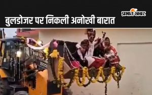 शादी के दिन बुलडोजर पर सवार दूल्हे को देखने लोगों की भीड़ सड़क पर जुट गयी. कई लोगों ने फूल भी बरसाए. जब बारात अपने गंतव्य पर पहुंची तो स्वागत में खड़े लड़की वाले भी बुलडोजर पर सवार दूल्हे को देखकर दंग हो गये. बारात में शामिल बाराती नाचते गाते बुलडोजर के आगे चलते नजर आये.
