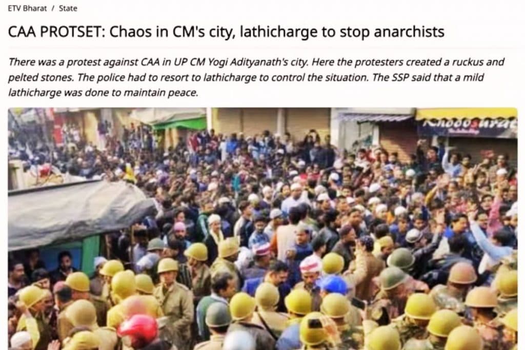- रिपोर्ट में कहा गया है कि पुलिस ने CAA विरोधी प्रदर्शन के दौरान गोरखपुर के नखास चौक पर भीड़ को कंट्रोल करने के लिए आंसू गैस का इस्तेमाल किया और लाठीचार्ज किया था.