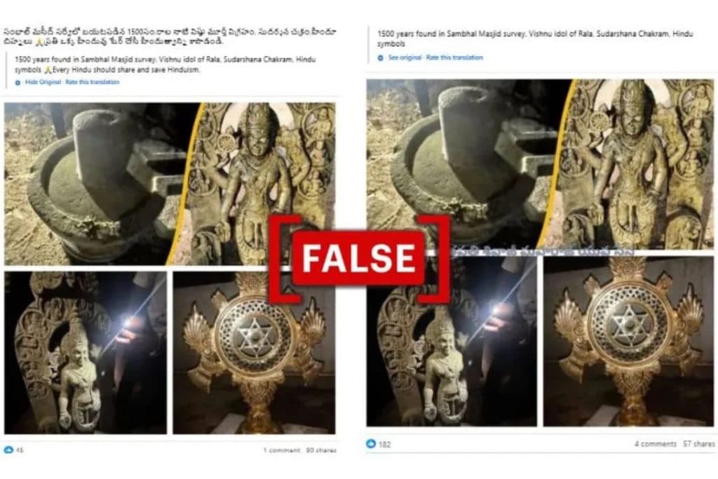 कर्नाटक में मिली मूर्तियों की तीन तस्वीरें और एक शॉपिंग वेबसाइट की तस्वीर को गलत तरीके से यह दावा करते हुए शेयर किया गया कि ये मूर्तियां उत्तर प्रदेश के संभल में शाही जामा मस्जिद के सर्वे के दौरान पाई गई थीं.