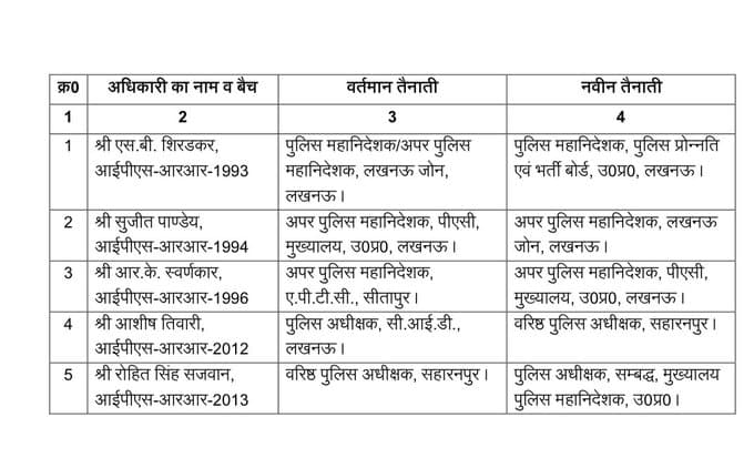 यूपी में 5 IPS अधिकारियों का फेरबदल, देखें लिस्ट