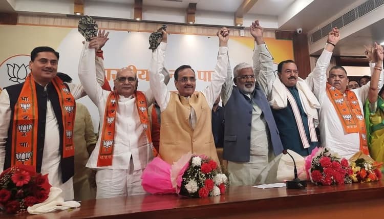 UP Election 2022 : प्रदेश के उप मुख्यमंत्री केशव प्रसाद मौर्य और भाजपा प्रदेश अध्यक्ष स्वतंत्रदेव सिंह ने विपक्ष के चार विधान परिषद सदस्यों को पार्टी की सदस्यता ग्रहण कराते हुए सपा-बसपा के खेमे में बड़ी सेंध लगा दी है. इन नामों में विपक्ष के चार एमएलसी नेताओं को पार्टी की सदस्यता दिलवाई गई है. इनमें एमएलसी सीपी चंद्र, एमएलसी रविशंकर पप्पू,एमएलसी रमा निरंजन और एमएलसी नरेंद्र भाटी ने पार्टी की सदस्यता ग्रहण कर ली है.