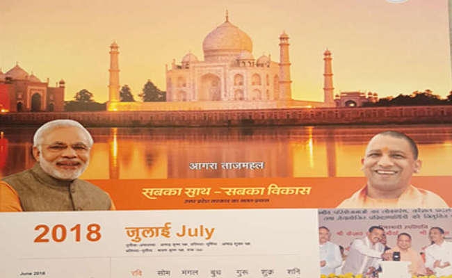 मीडिया में आ रही खबरों के अनुसार, जुलाई के पन्ने पर ताज की तस्वीर के साथ-साथ प्रधानमंत्री नरेंद्र मोदी और मुख्यमंत्री योगी की तस्वीर दी गयी है. इस पन्ने पर युवा कल्याण की योजनाओं के साथ सबका साथ-सबका विकास नारा भी दिया गया है. दरअसल, भाजपा विधायक संगीत सोम के ताजमहल पर दिये गये बयान के बाद विपक्ष आक्रामक हो गया है.