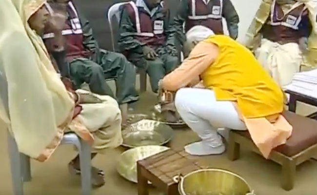 प्रयागराज : प्रधानमंत्री नरेंद्र मोदी ने रविवार को यहां कुम्भ मेले में इतिहास रचते हुए पांच सफाईकर्मियों के चरण धुलकर कुम्भ मेले में उनके विशेष योगदान के लिए उन्हें सम्मानित किया.
