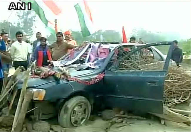 गाजियाबाद: नीलामी के दौरान अंडरवर्ल्ड डॉन दाऊद इब्राहिम की कार खरीदने वाले दक्षिणपंथी हिंदू नेता स्वामी चक्रपाणिनेबुधवार को दिल्ली के समीप गाजियाबाद के इंदिरापुरम में इस कार को सार्वजनिक रूप से आग के हवाले कर दिया. इससे पहले कल चक्रपाणि नेऐलानकरतेहुए कहा था कि उनका संगठनकल दोपहरएकसे दो बजेकेबीच सार्वजनिक रूप सेदाऊदकी कार को आग लगा देंगे.