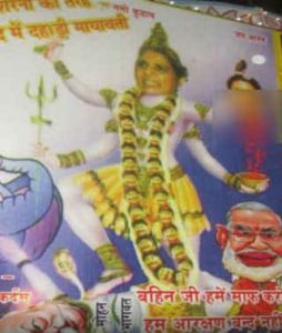 पोस्टर में मायावती का ‘काली” वाला रूप, RSS-BJP के तीन दिग्गज को दिखाया लाचार