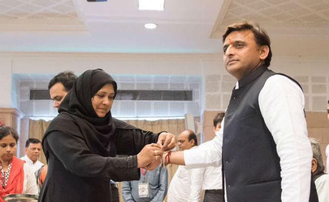 अखिलेश ने यहां स्मार्टफोन योजना के पंजीयन के वेब पोर्टल के उद्घाटन अवसर पर कहा ‘‘वह (मायावती) कहती हैं कि समाजवादी पार्टी के लोगों में बंटवारा है, लेकिन मुस्लिम भाई जानते हैं कि समाजवादी पार्टी उनके कितने करीब है. हम लोग भूले नहीं हैं अभी…. वह रक्षाबंधन वाला त्यौहार कोई नहीं भूला है कि किसने किसको राखी बांधी थी. वह गुजरात वाली बातें नहीं भूले हैं कि कौन जाकर किसके लिये वोट मांगकर आया था.’