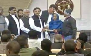 लखनऊ : प्रदेश के मुख्यमंत्री अखिलेश यादव पूरी तरह से चुनावी मोड में आ गये हैं. आज उन्होंने एक नया दांव खेला और यूपी में नोटबंदी के बाद जिन लोगों की बैंकों और एटीएम की कतार में लगने से मौत हो गयी है, उनके आश्रितों को सहायतार्थ दो-दो लाख रुपये का चेक प्रदान किया.