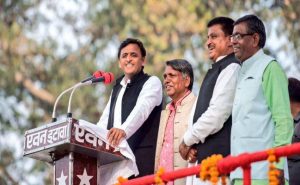 मुख्यमंत्री ने कहा, ‘ जब अमेरिकी राष्ट्रपति भारत आये थे, तो उन्होंने जो सूट पहना था उस पर उनका नाम अंकित था. प्रधानमंत्री ने किसकी नकल की थी?’ अखिलेश ने यह भी कहा कि भाजपा ने सपा के चुनाव घोषणापत्र की भी नकल की. अखिलेश ने कहा, ‘यदि नहीं तो आप लोगों को मेरी मदद करनी पड़ेगी. नहीं जानता कि वे कहां पहुंच गये हैं. वे श्मशान और कब्रिस्तान की तरफ जा रहे हैं और होली-दिवाली की बातें कर रहे हैं. समाजवादी लोग भाईचारा बढ़ाने और लोगों को एकजुट करने की दिशा में काम करते हैं.’