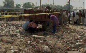 Two explosions in Agra. One in a garbage dumping tractor and the other on the terrace of a house.No injuries. Visuals from the spot pic.twitter.com/biH6VEumvx