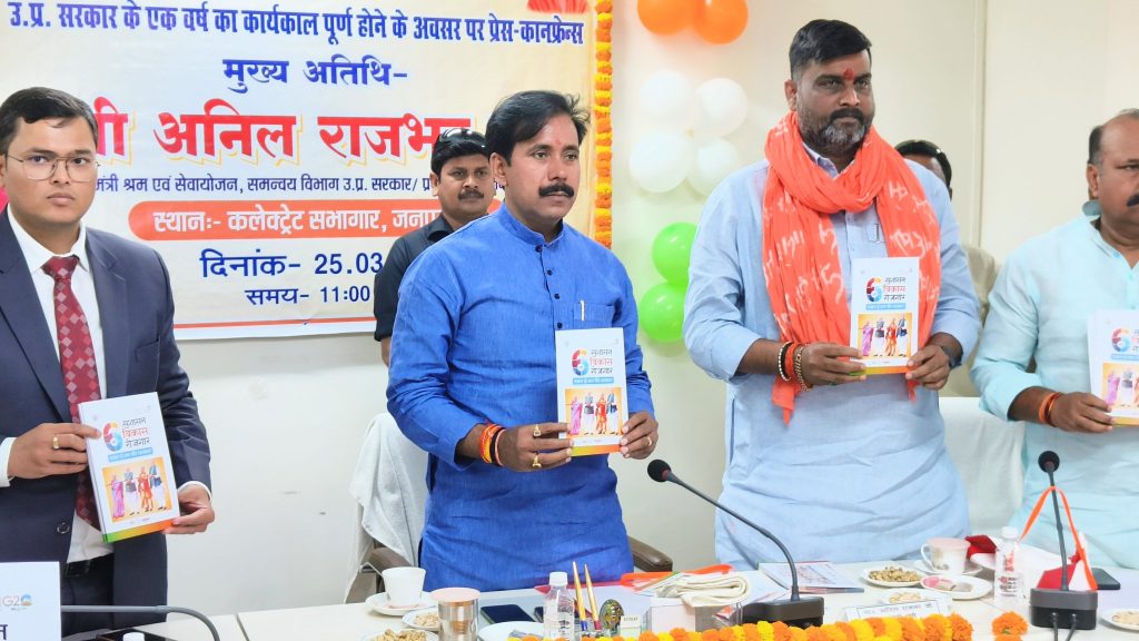 Lucknow: योगी आदित्यनाथ सरकार के दूसरे कार्यकाल के एक वर्ष पूरे होने पर शनिवार को मऊ में श्रम एवं सेवायोजन, समन्वय विभाग कैबिनेट मंत्री अनिल राजभर ने कांग्रेस नेता राहुल गांधी पर निशाना साधा. उन्होंने कहा कि राहुल गांधी खुद को देश और संविधान से ऊपर समझते हैं.