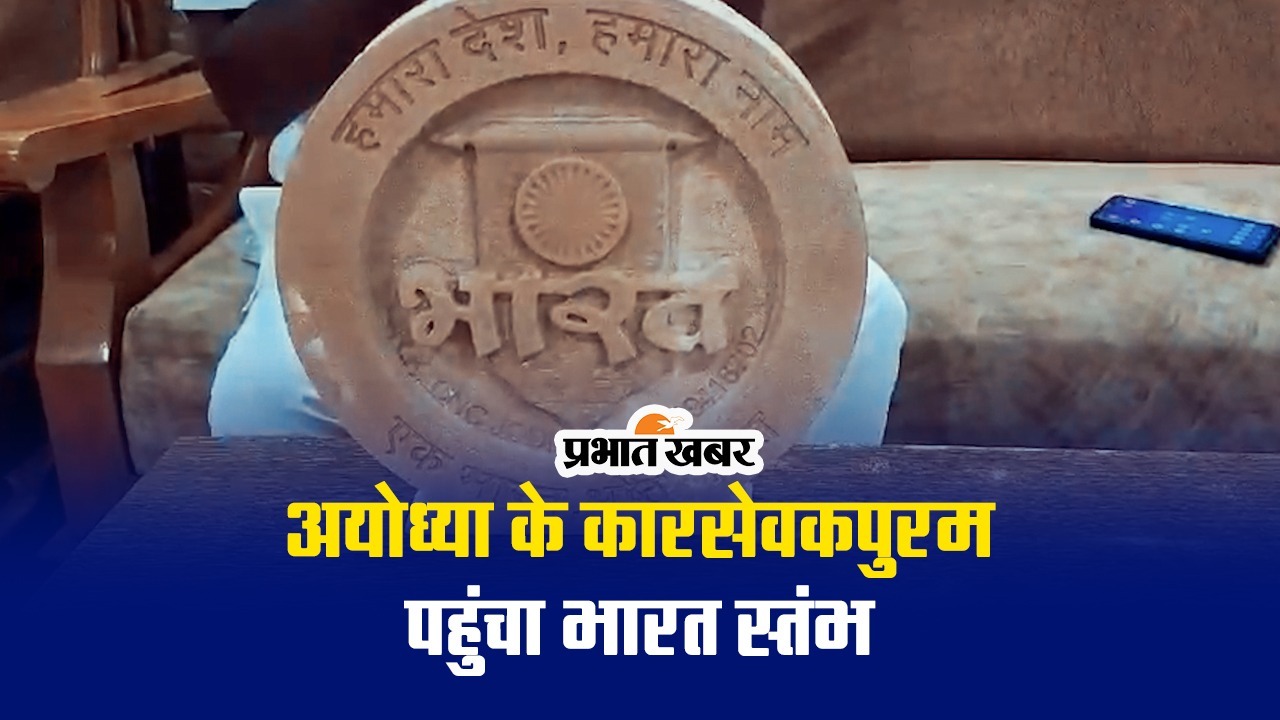 भारत के नए स्मृति चिह्न को रामनगरी अयोध्या के श्रीराम मंदिर को समर्पित किया गया है. राजस्थान के एक श्रद्धालु ने राम जन्मभूमि तीर्थ क्षेत्र ट्रस्ट को ये चिह्न भेंट किया है. पिंक स्टोन से बने इस स्मृति चिह्न में भारत लिखा गया है. श्रीराम जन्मभूमि तीर्थ क्षेत्र ट्रस्ट के कारसेवकपुरम स्थित कार्यालय में इसे रखा गया है. इसे भेंट करने वाले श्रद्धालु ने इच्छा जताई कि है भारत नाम की जो चर्चा वर्तमान में चल रही है, वह पूरी हो और देश का नाम भारत हो. वहीं विश्व हिंदू परिषद कार्यालय प्रभारी कारसेवकपुरम, अयोध्या भूपेंद्र सिंह ने बताया कि देश का नाम तो भारत ही है. कुछ तथाकथि लोगों ने विभिन्न नाम रख दिए.