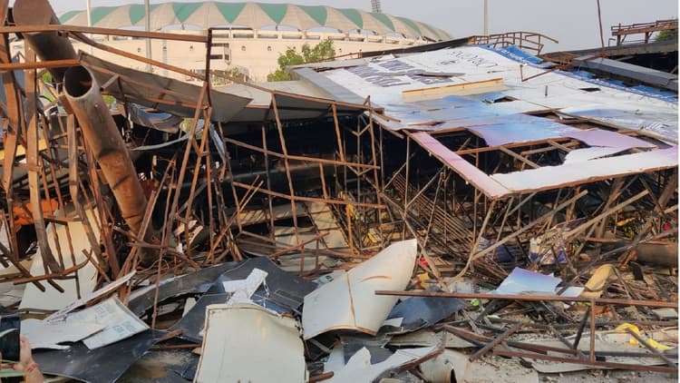 लखनऊ. यूपी की राजधानी लखनऊ से बड़ी खबर सामने आ रही है. लखनऊ में आंधी से इकाना स्टेडियम का होर्डिंग बोर्ड गिर गया. जिसमें दबकर दो लोगों की मौत हो गयी. वहीं एक की हालत गंभीर बतायी जा रही है. मामले में बचाव कार्य जारी है. मलबे में दबी गाड़ी से 3 लोगों को रेस्क्यू किया गया. दबे हुए लोग मदद की गुहार लगा रहे थे. बड़ी मुश्किल से गाड़ी के ड्राइवर और मां बेटी को निकाला गया. घायलों को इलाज के लिए हॉस्पिटल भेजा गया. जिसमें दो लोगों की मौत हो गयी है.