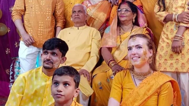 हार्दिक करीब आठ वर्ष पहले नीदरलैंड जाकर वहां एक दवा कंपनी में बतौर सुपरवाइजर काम करने लगे. तीन साल पहले उसी दवा कंपनी में नीदरलैंड के बार्नेवेल्ड शहर की रहने वाली गैबरीला डूडा (21) पुत्री मारसिन डूडा (मां-बारबरा डूडा) से मुलाकात हुई. दोनों की मुलाकात के दौरान प्रेम परवान चढ़ा और दोनों नीदरलैंड में ही दो साल से लिव-इन रिलेशन में रहने लगे. परिजनों को जानकारी हुई तो दोनों ने शादी के बंधन में बंधने का फैसला लिया. विदेशी प्रेमिका गैबरीला डूडा अपने प्रेमी युवक हार्दिक वर्मा के साथ करीब 15 दिन पहले भारत आकर उनके गुजरात के गांधीनगर स्थित घर आ गई. वहीं दोनों की इंगेजमेंट परिजनों ने करवा दी. इसके बाद 25 नवंबर को हार्दिक वर्मा के पिता राधेलाल परिवार और विदेशी युवती गैबरीला डूडा के साथ ललौली थाना क्षेत्र के अपने पैतृक गांव दतौली आ गए. यहां गांव पहुंचने पर घर वालों ने गर्मजोशी से अपने बेटे और अपनी होने वाली बहू का स्वागत किया. इसके बाद 26 नवंबर को परिजनों और रिश्तेदारो की मौजूदगी में शादी की सारी रस्में शुरू हुईं. विधि-विधान से संपन्न हुए वैवाहिक समारोह का परिवार के सदस्यों के साथ ग्रामीण भी हिस्सा बनें. यहां मेहंदी व हल्दी की रस्में हुईं, जिसमें गबरीला ने खूब डांस किया. महिलाओं ने गीत गाकर खुशी मनाई. इस बीच 28 और 29 नवंबर मंगलवार और बुधवार की रात दोनों ने एक-दूजे को वरमाला पहनाई. इसके बाद देर रात शादी की सारी रस्में निभाई गईं. हार्दिक और गबरीला ने सात फेरे लिए. वहीं धीरे-धीरे यह बात पूरे गांव में फैल गई. जिसके बाद हार्दिक घर बधाई देने वालों का तांता लग गया.