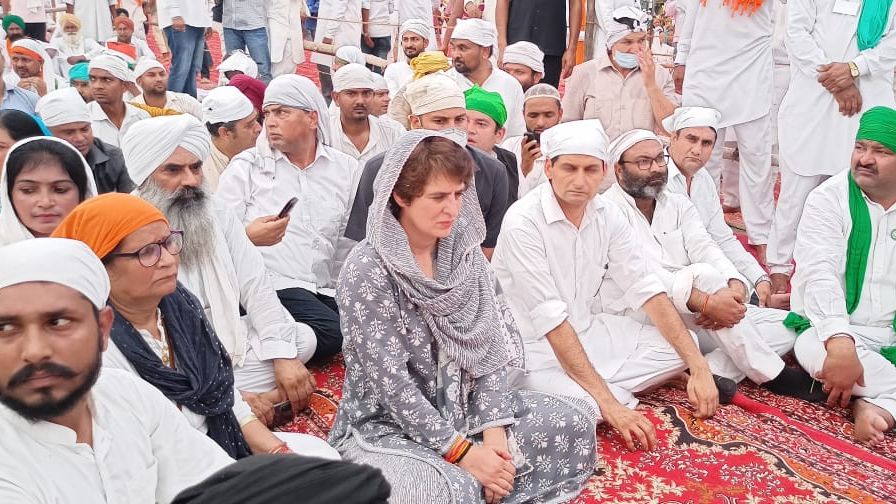 कांग्रेस महासचिव प्रियंका गांधी किसानों की अंतिम अरदास में मंच की जगह आम लोगों के बीच बैठीं. किसान नेताओं ने पहले ही घोषणा कर दी थी कि मंच पर किस भी राजनीतिक दल के नेता को बैठने नहीं दिया जाएगा.