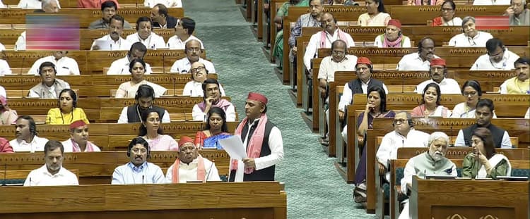 लखनऊ: 18वीं लोकसभा (Lok Sabha)सत्र के सातवें दिन मंगलवार को समाजवादी पार्टी के राष्ट्रीय अध्यक्ष अखिलेश यादव को राष्ट्रपति के अभिभाषण के जवाब में बोल रहे थे. उन्होंने पहले लोकसभा स्पीकर का धन्यवाद दिया. इसके बाद शेर से अपने व्यक्तत्व की शुरुआत की. अखिलेश ने कहा कि इस सरकार का आवाम ने तोड़ दिया हुकूमत का गुरूर है. दरबार तो लगा है लेकिन गमगीन और बेनूर है. पहली बार ऐसा लग रहा है हारी हुई सरकार विराजमान है. जनता कह रही है कि चलने वाली नहीं, ये गिरने वाली सरकार है. क्योंकि ऊपर से जुड़ा कोई तार नहीं है, नीचे कोई आधार नहीं, अधर में जो लटकी वो तो कई सरकार नहीं.