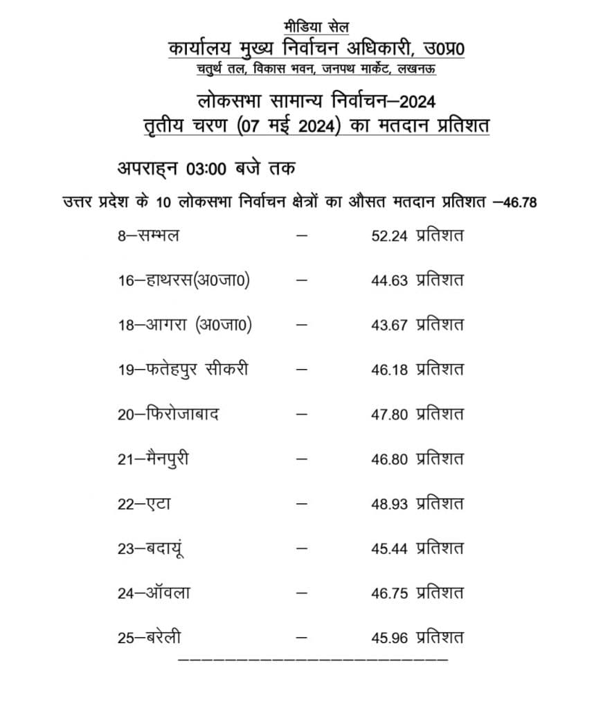 यूपी में 3 बजे तक 46.78 प्रतिशत वोटिंग, देखें लिस्ट