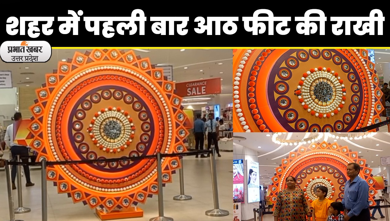 Raksha Bandhan 2023: शहर में पहली बार आठ फीट की राखी बनाई गई है. इस राखी को लुलु मॉल में सजाया गया है. खास बात यह है कि यह राखी सात दिन में बनकर तैयार हुई है और इस पर लगभग एक लाख रुपए से भी ज्यादा का खर्च आया है. इसकी खूबसूरती की वजह इसका पारंपरिक तरीके से बनाया जाना है.