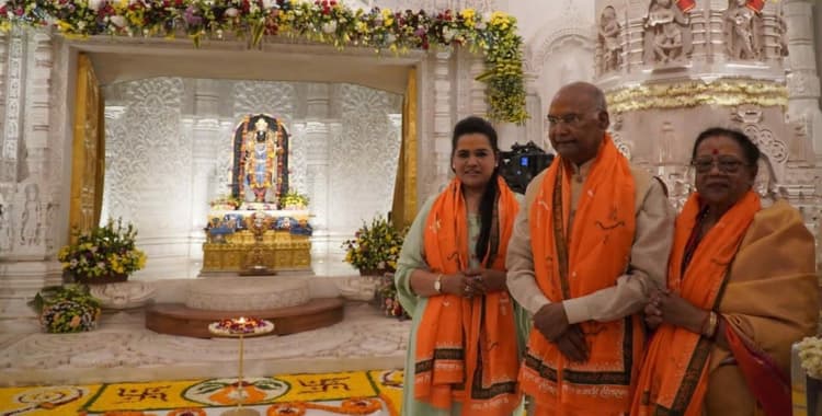 अयोध्या: पूर्व राष्ट्रपति रामनाथ कोविंद (Ramnath Kovind) ने शनिवार को अयोध्या (Ayodhya Ram Mandir) में रामलला के दर्शन किए. उनके साथ परिवार के लोग भी थी. पूर्व राष्ट्रपति के स्वागत में मंदिर परिसर सहित पूरे गर्भगृह को फूलों से सजाया गया था. रामलला के दर्शन के बाद वो कुबेर टीला भी गए. उन्होंने पक्षीराज जटायु को प्रणाम किया. पूर्व राष्ट्रपति रामनाथ कोविंद शुक्रवार दोपहर बाद परिवारजनों के साथ रामनगरी पहुंच गए थे. जैन मंदिर में अल्प विश्राम के बाद वे सरयू आरती में शामिल हुए थे. शनिवार सुबह उन्होंने परिवार के साथ श्रीराम लला के दर्शन किए. पूर्व राष्ट्रपति की अगवानी के लिए श्रीराम जन्मभूमि तीर्थ क्षेत्र के महामंत्री चंपत राय पहले से मंदिर परिसर में मौजूद थे.