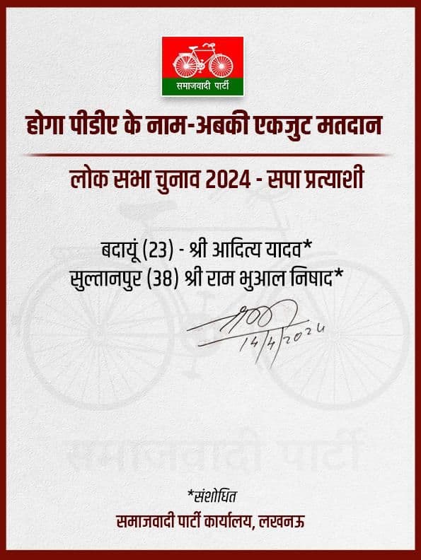 Samajwadi Party List: सपा ने दो टिकट बदले, बदायूं से आदित्य यादव, सुल्तानपुर से राम भुआल निषाद को टिकट