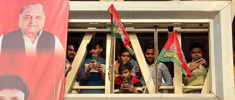 भीड़ से कोई लैपटॉप दिखा रहा तो कोई घोडे़ पर बैठकर अखिलेश यादव को सुनने आता दिखा. मंच से अखिलेश यादव ने कहा कि ‘रोजगार छीनने वाली, किसानों पर जीप चढ़ाने वाली’ बीजेपी सरकार का सफाया तय है.