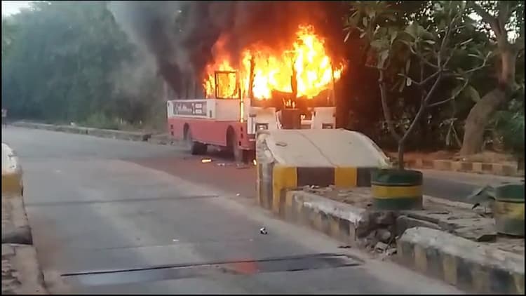 UP Roadways News: उत्तर प्रदेश के बाराबंकी जनपद में सवारियों को लेकर जा रही परिवहन निगम की बस के अचानक आग का गोला बनने के कारण यात्रियों की जान संकट में पड़ गई. गनीमत रही कि आग के पूरी तरह बस को चपेट में लेने से पहले सभी यात्री सुरक्षित उतर गए, वरना बड़ा हादसा हो सकता था. इस दौरान कुछ यात्रियों का सामान भी जलकर खाक हो गया. वहीं आग लगने के दौरान जिस तरह यात्रियों के बीच अफरातफरी देखने को मिली और लोग खिड़कियों से कूदने लगे, उससे मौके पर हड़कंप मच गया. बाराबंकी स्थित अकबरपुर से यात्रियों को लेकर कानपुर जा रही रोडवेज बस में लखनऊ-अयोध्या नेशनल हाईवे पर अहमदपुर टोल प्लाजा पर पहुंचते ही आग लग गई. इस पर बस चालक ने तेजी से बस को बैक कर प्लाजा से दूर किया. जब तक लोग कुछ समझ पाते चंद पलों में ही बस से आग की विकराल लपटें उठने लगीं. इस दौरान टोलकर्मियों ने यात्रियों को बाहर निकाला तो कुछ जान बचाने के लिए खिड़कियों से कूद गए. सूचना पर पहुंची दमकल की टीम ने करीब दो घंटे बाद आग पर काबू पाया. हालांकि तब तक बस पूरी तरह जल चुकी थी.उधर इस प्रकरण में बुधवार को परिवहन मुख्यालय ने कार्रवाई की है. इसमें जूनियर फोरमैन को निलंबित कर दिया गया है.