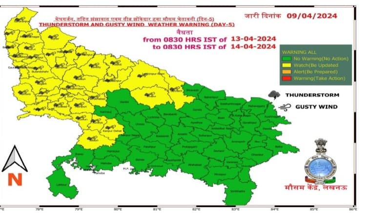 लखनऊ: यूपी में लोगों को गर्मी (UP Weather) से राहत मिलेगी. मौसम विभाग ने 10, 11 और 12 अप्रैल को बारिश की संभावना जताई है. पश्चिमी और पूर्वी उत्तर प्रदेश के दक्षिणी हिस्सों में बारिश और गरज चमक के साथ बौछारें पड़ने की संभावना है. कहीं-कहीं बिजली भी गिर सकती है. 13 अप्रैल को तेज आंधी और पानी बरसने का अलर्ट है. वैसे तो यूपी में दिन सुबह और रात में पारा दिन के मुकाबले कुछ कम रहता है. इसलिए लोगों को थोड़ी राहत है. मंगलवार शाम को भी लखनऊ व आसपास बूंदाबांदी हुई. बुधवार और गुरुवार को भी बूंदाबांदी हो सकती है.