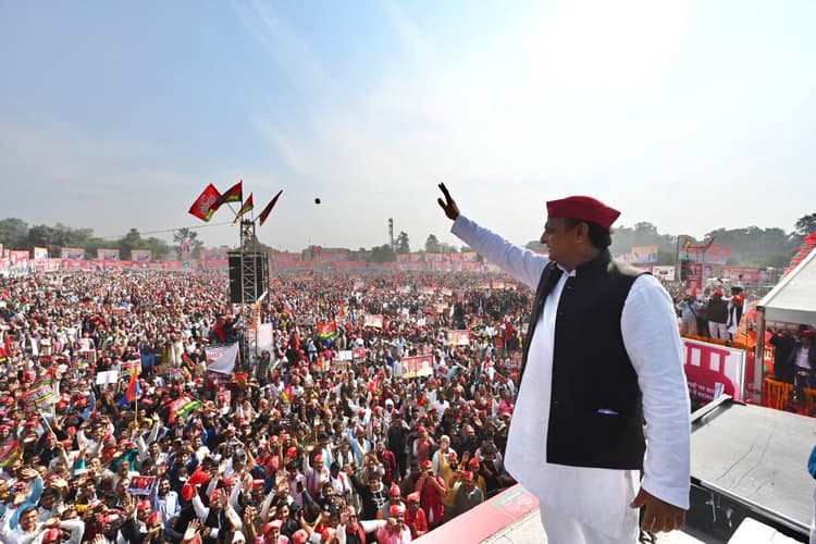 Akhilesh Yadav Visit in Bundelkhand: सपा सुप्रीमो अखिलेश यादव गुरुवार को बुंदेलखंड के गिन्नौट बाग में जनसभा को संबोधित करने पहुंचे. बुंदेलखंड में चुनावी सभा को संबोधित करने का यह यूपी के पूर्व मुख्यमंत्री का दूसरा दिन है. इस बीच अखिलेश की जनसभा में सपाइयों की भीड़ उमड़ पड़ी थी.