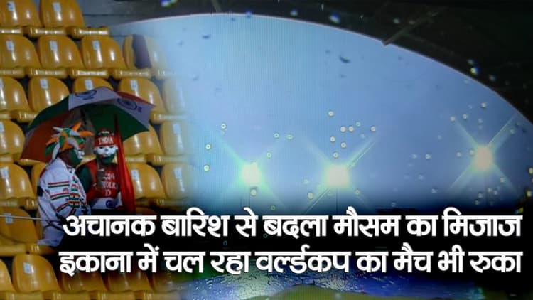लखनऊ में अचानक बारिश से बदला मौसम का मिजाज, इकाना स्टेडियम में चल रहा World Cup का मैच भी रुका