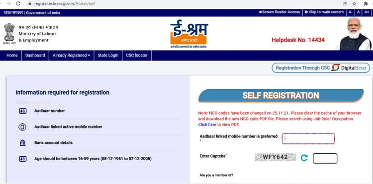 सबसे पहले ई-श्रम पोर्टल की आधिकारिक वेबसाइट eshram.gov.in पर जाएं.