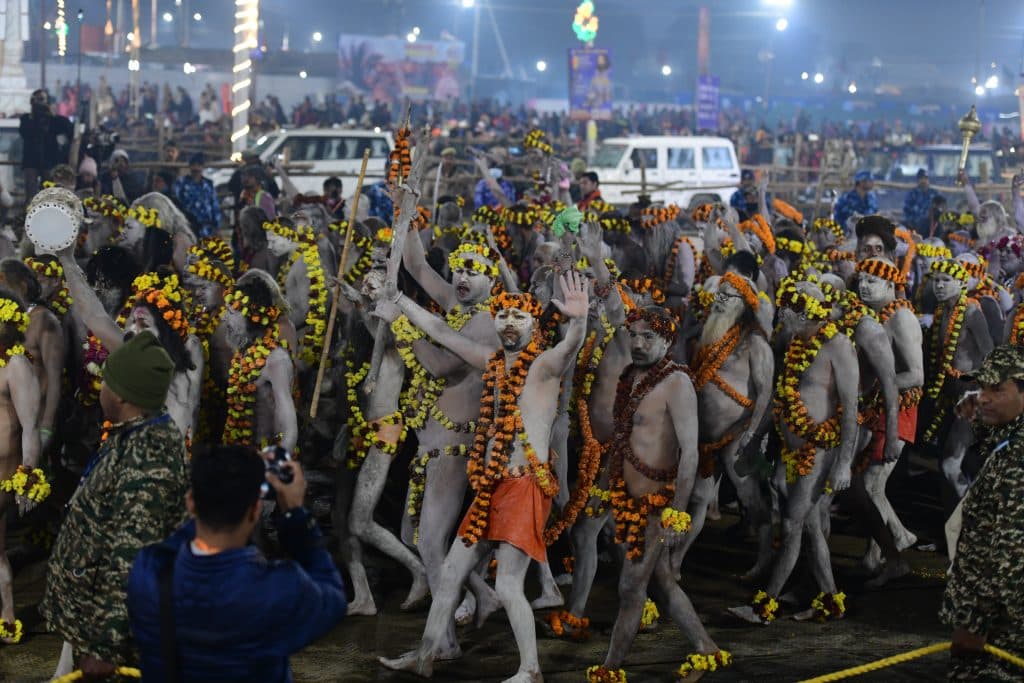 महाकुंभ में बसंत पंचमी का अमृत स्नान करने जाते साधु-संत और सभी अखाड़ों के श्रद्धालु एक साथ नजर आए.