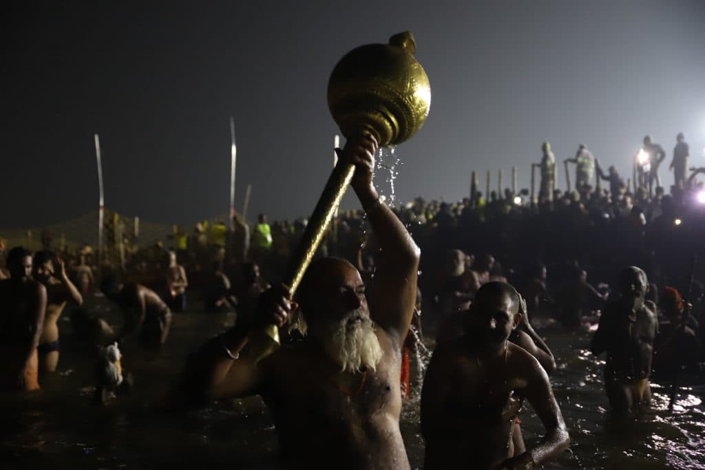 गदा लेकर बसंत पंचमी पर अमृत स्नान